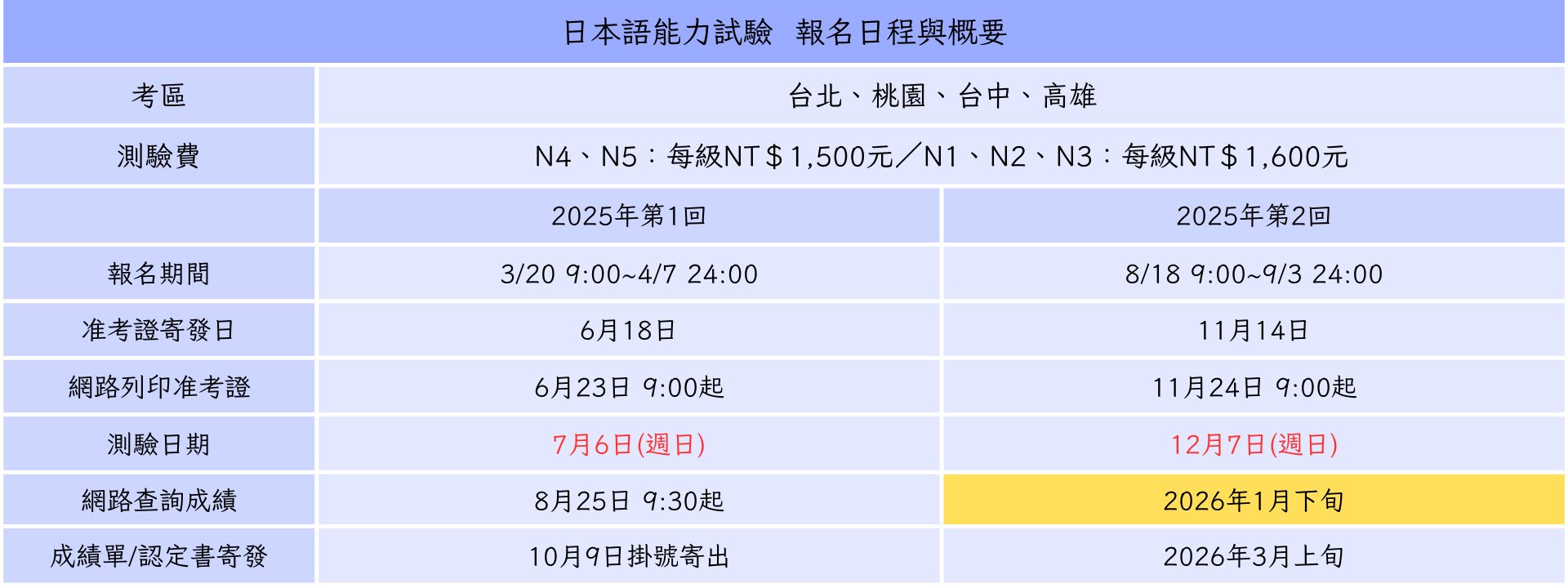 2025年起上下午場測驗級數調整公告